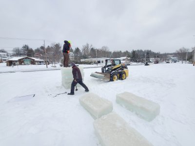 Workers who built Ice Palaces years ago shared stories of builds in the past, when they used snowmobiles dragging ice blocks on sleds to transport the bricks.