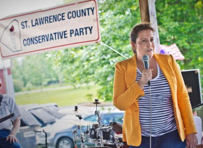 - Rep. Elise Stefanik, of New York’s 21st Congressional District, speaks Sunday at the St. Lawrence County Conservative Party barbecue in Morristown. (Provided photo — Christopher Lenney/Watertown Daily Times)