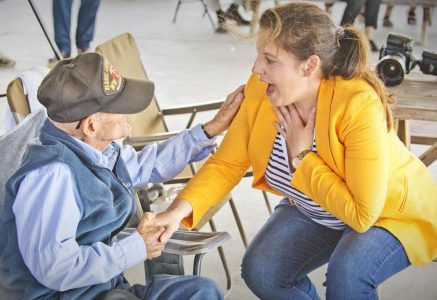 - Rep. Elise Stefanik, of New York’s 21st Congressional District, talks with World War II veteran Charles Alexander on Sunday at the meet-and-greet barbecue in Morristown. (Provided photo — Christopher Lenney/Watertown Daily Times)