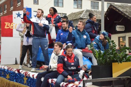 The state Olympic Regional Development Authority, in partnership with the Regional Office of Sustainable Tourism and the Adirondack Sports Council, hosted the “Lake Placid Athlete Parade and Welcome Home Olympians” celebration, which culminated in a series of speeches from athletes and local officials at the speedskating oval.
