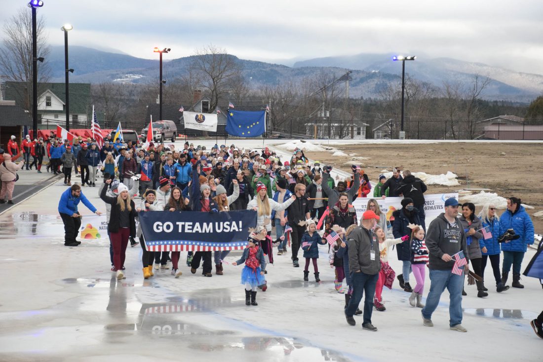 A parade of Olympians returning from this year’s Beijing Winter Olympics, former Olympians and other athletes made its way from Brewster Park to the Olympic Speedskating Oval as spectators along Main Street cheered them on.