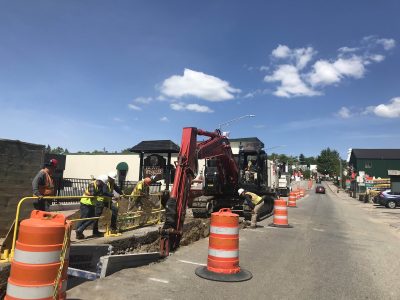 Work along Main Street spanned most of the one-way corridor, which begins at the intersection of state routes 73 and 86 (top of Mill Hill) and ends at the top of Saranac Avenue, next to St. Agnes Catholic Church.