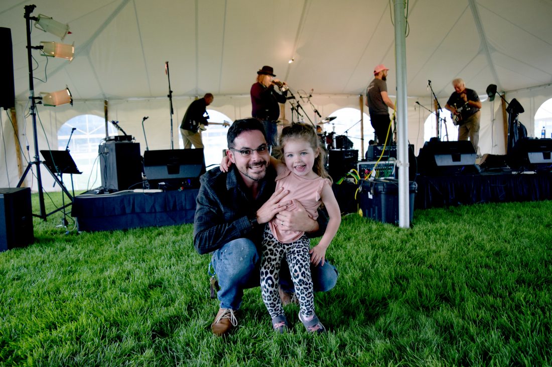 Jared Bashant, originally from Tupper Lake, and his daughter Ava listen to Mad Dog while they visit from Albany at the 2022 I Love BBQ festival. (Enterprise photo — Lauren Yates)