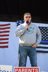 Stephen Chilton III, of Ellenburg Center, pitched himself as a first-time political candidate, a UPS driver, who is running against Democratic Assemblyman Billy Jones in the 115th District because he believes Jones has “lost his way.” When he said Jones has endorsed Hochul, boos from the crowd were heard.