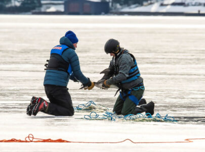 It’s still early in the season, so ice on the lake is not as thick as it typically gets in January or February.