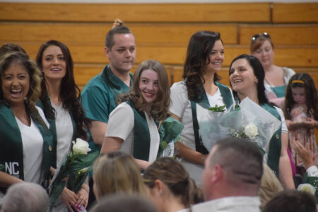 - Nursing graduates smile at the end of a nurse pinning ceremony at North Country Community College on Thursday. This ceremony is an extra honor for graduates like them, with a history dating back centuries. (Enterprise photo — Aaron Marbone)