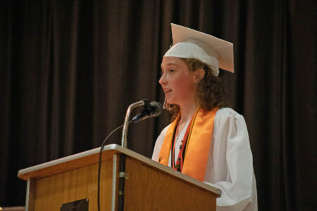 “We’ve got a pretty unique class to celebrate,” salutatorian Harmer said at the end of her speech. “And my one last reminder: Don’t strive for perfection; strive to be you.”