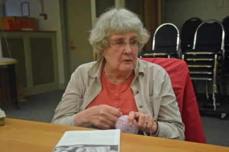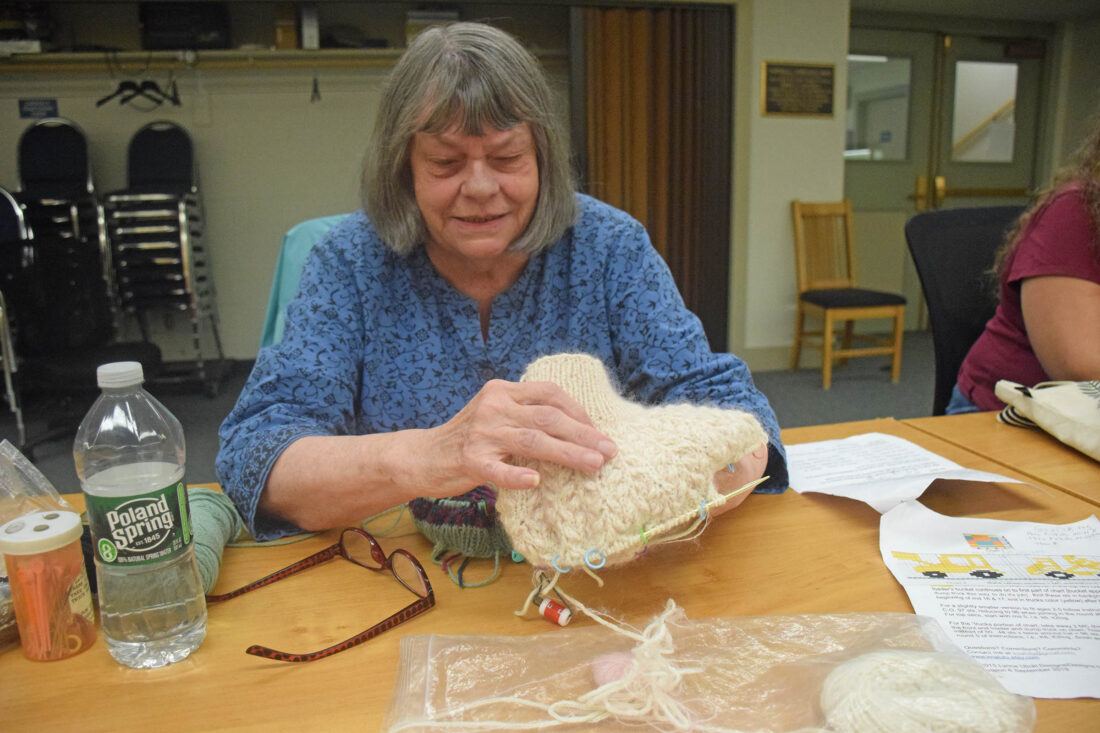 This drew a hearty laugh from her friends gathered around the room. It’s a part of the knitting process they all know well.