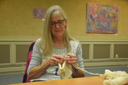 - Lynne Ulicki started the “Knitterondackers” social knitting group seven years ago. (Enterprise photo — Aaron Marbone)