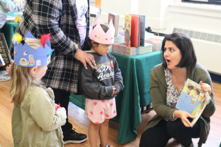 Author Emma Otheguy reads one of her children’s books to a pair of young fans. (Enterprise photo — Sydney Emerson)