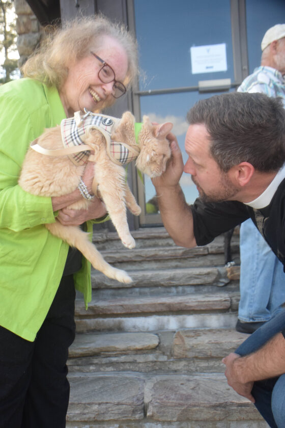 LAKE PLACID — The Rev. Ken Hitch blessed cats and dogs on the front steps of St. Eustace Episcopal Church after Sunday’s service at the annual Blessing of the Animals, including one additional animal that wasn’t a pet — a squirrel that had become trapped in the glass alcove outside the front doors of the church.