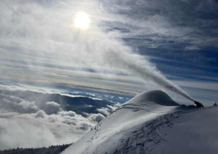 The mural is comprised of 32 panels painted by different artists and community groups around Saranac Lake. Though each panel depicts a different scene, object or idea, they all come together to form a rainbow gradient. The project, coordinated by ArtRise co-owner and teacher Britt Sternberg, has been in the works since last fall. Sternberg said the mural’s inception is a “long story.”