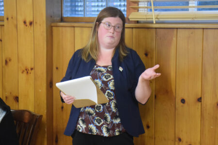 - Tupper Lake Town Recreation Department Director Laura LaBarge presents at the town board meeting Tuesday evening. (Enterprise photo — Chris Gaige)