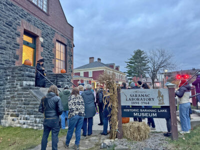 - Peter Davis, left, and Gerard Ellers smile on Mirror Lake’s southern shore near the public tennis courts in Lake Placid Tuesday morning. They were removing the swimming and crew buoys from the lake, an annual reminder that winter is on the doorstep. The water was 53 degrees Fahrenheit as of press time Tuesday evening, according to data from the Ausable Freshwater Center. (Enterprise photos — Chris Gaige)