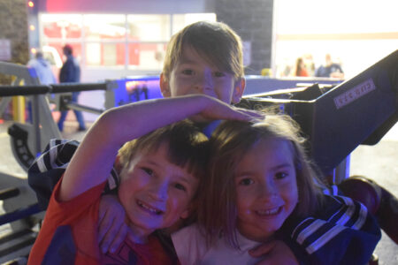 From left, Axxel Lions, Roland Counter and Evie Counter smile at the Heroes and Helpers Night held at the Tupper Lake Emergency Services Building on Wednesday evening. The event was organized by the newly-formed Tupper Lake Central School District Parent Teacher Organization. (Enterprise photo — Chris Gaige)