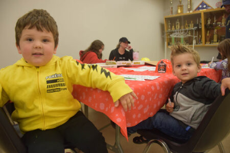 - Brothers Aaryn, left, and Gunnar Dukette smile at the Heroes and Helpers Night held at the Tupper Lake Emergency Services Building on Wednesday evening. (Enterprise photo — Chris Gaige)