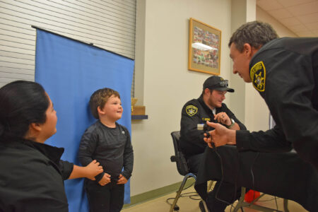 This was far from the case Wednesday evening at the Tupper Lake Emergency Services Building, as 30 kids of all ages and grade levels lined up in front of the camera to get their photo taken by the Franklin County Sheriff’s Department.