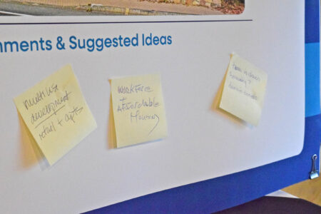 - Residents left suggestions on each part of the Lake Placid Downtown Revitalization Initiative grant application during an open house on Wednesday. (Enterprise photo — Grace McIntyre)