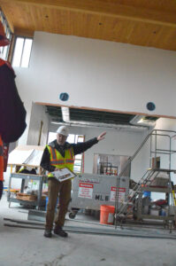 Harry Gordon gives a tour of the Pendragon Theatre lobby on Friday. The theater’s new location on the corner of Woodruff and Church streets is 80% complete, two months ahead of schedule, he said. (Enterprise photo — Aaron Marbone)