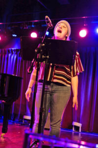 Molly Heller performs the concert version of “Existential Questions of the 21st Century” at Green Room 42. A full performance of the climate doomerism musical will be presented at the Saranac Lake Free Library on Sunday at 3 p.m. (Provided photo — Travis Emery)