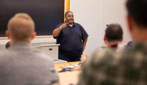 Lorenzo M. Boyd, Ph.D., founder and president of RENZ Consulting, LLC, addresses law enforcement officers at Community Policing Training in 2021. (Provided photo — RENZ Consulting, LLC)