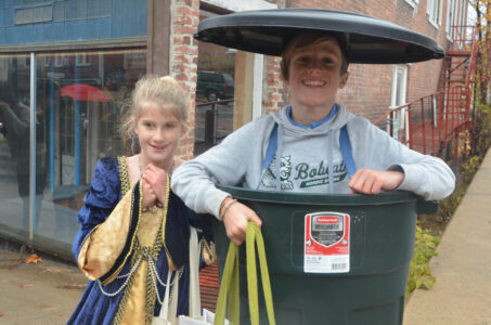- Dove, 8, and Dax Dougherty, 10, display polar-opposite costumes while trick-or-treating. Dax had probably the loudest costume on Broadway, dragging several tin cans on a string behind him, which could be heard from down the street. (Enterprise photo — Aaron Marbone)