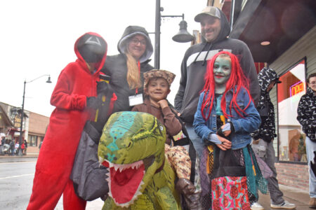 The Tarbox Family smiles at the Park Street Trick-or-Treat in Tupper Lake on Halloween. From left, Khloee, Emilie, Jackson, Aleha and Kris.
