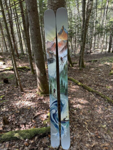 Calzada-Cain said this was her first time painting skis. They’re an odd canvas, she said. She designed the layout on her phone and then painted them freehand.
