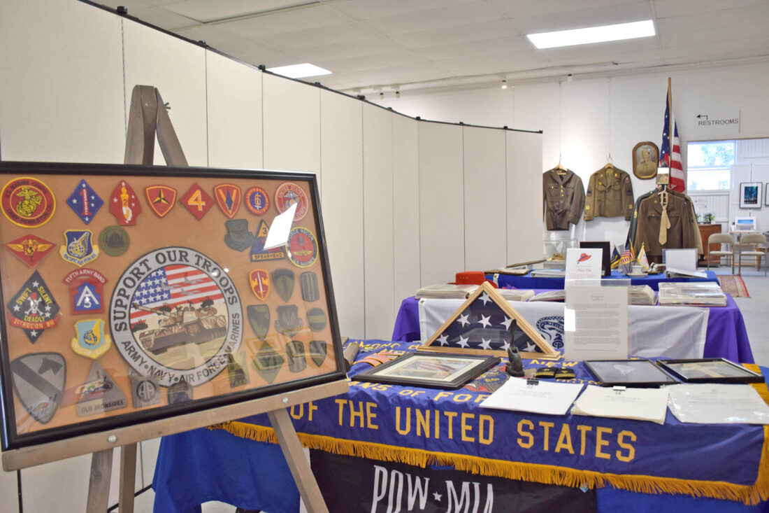 - Tables from several veterans organizations showcasing various military memorabilia are seen at Tupper Arts on Wednesday. They are part of a veterans’ tribute exhibit between the Tupper Lake History Museum and Tupper Arts. (Enterprise photo — Chris Gaige)