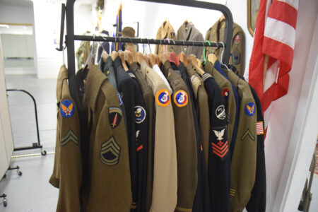 - Historical U.S. military uniforms from the Tupper Lake History Museum are seen on display at Tupper Arts on Wednesday. (Enterprise photo — Chris Gaige)