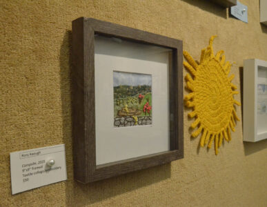 - Rory Keough’s framed textile collages have been popular works at the Saranac Lake Free Library’s current “Fibrary” show. (Enterprise photo — Aaron Marbone)