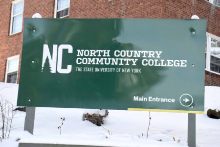 A North Country Community College sign is seen on Sunday in Saranac Lake. (Enterprise photo — Chris Gaige)