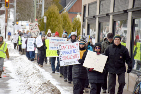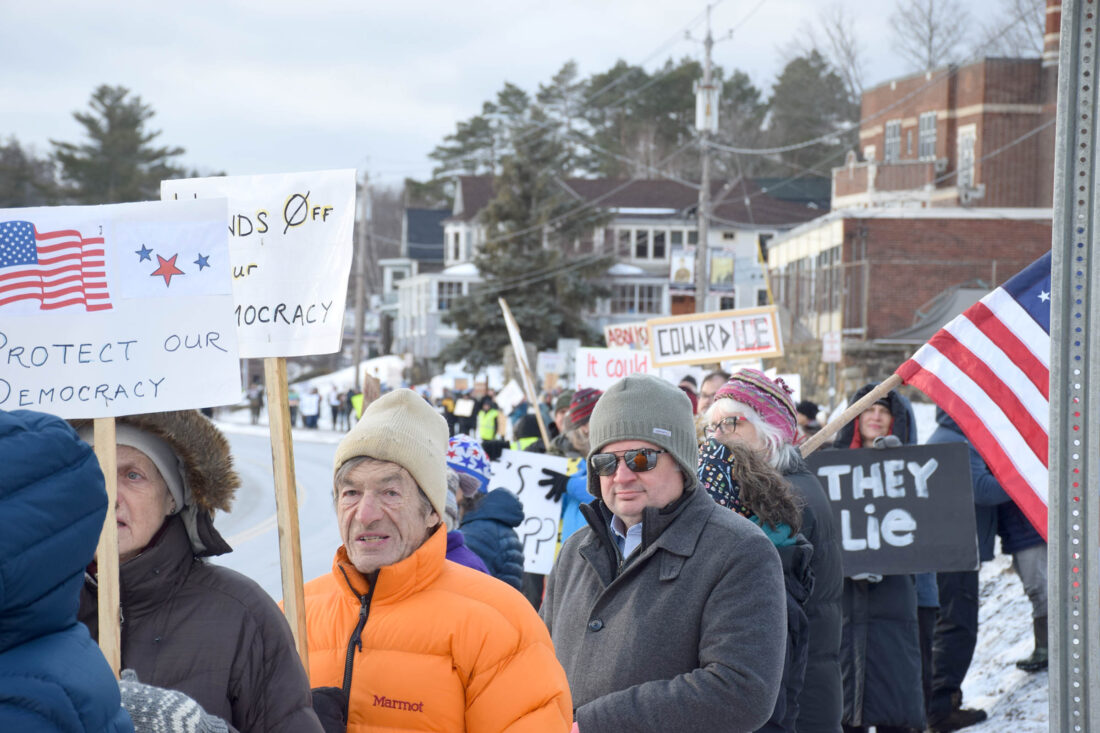 SARANAC LAKE — Around 250 people gathered here on Sunday as part of the nationwide “ICE Out For Good” gatherings to protest the fatal shooting of Renee Nicole Good in Minneapolis last week.
