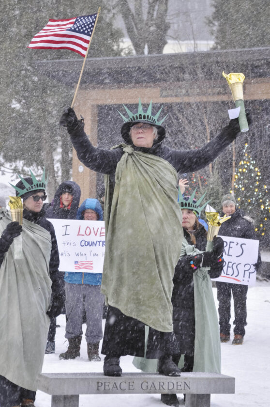 Grimmette said that Adirondack People Power, one of the groups that organized the event, chose to do a silent protest to collectively experience the grief that many felt from Good’s shooting death in Minneapolis. She said people are afraid now, but there’s power to be drawn from coming together.