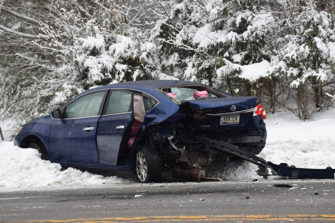 A second vehicle, a 2021 Toyota traveling eastbound, subsequently lost visibility and collided with the rear of the Nissan, according to State Police. The Nissan sustained heavy rear-end damage with airbag deployment. The Toyota sustained heavy front passenger-side damage with airbag deployment.