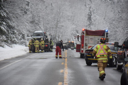 State Police responded to the crash at 10:46 a.m. It occurred about a half mile west of the intersection with the Bartlett Carry Road. State Police had incident command, and were joined by the Saranac Lake and Tupper Lake volunteer fire departments.