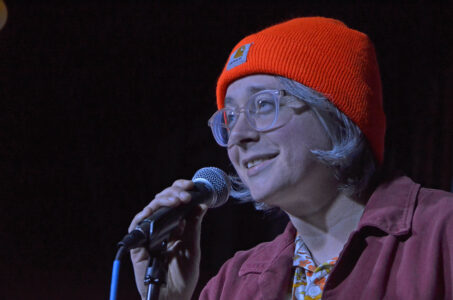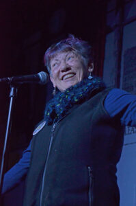 Thea Greene asks the crowd at the Chucklehead Hoedown why seagulls fly over the sea. (Because if they flew over the bay, they’d be bay-gulls!)