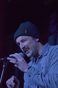Max Poulin tells a joke about killing a man and dumping his body in the Green River at the Chucklehead Hoedown on Thursday.