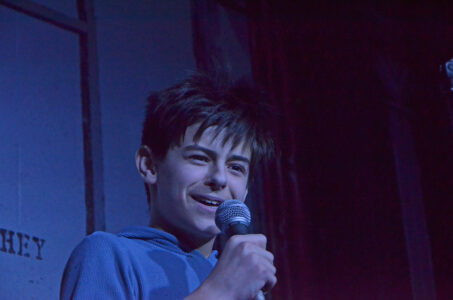 - Max Poulin tells a joke about killing a man and dumping his body in the Green River at the Chucklehead Hoedown on Thursday. (Enterprise photo — Aaron Marbone)