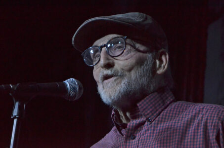 Brian Greene asks the crowd at the Chucklehead Hoedown what you call an old snowman. (Water!)