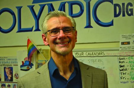 - Bill Torrey smirks after telling a joke about bald tires at the Chucklehead Hoedown on Thursday. (“I’m going to see if I can comb them over.”) (Enterprise photo — Aaron Marbone)