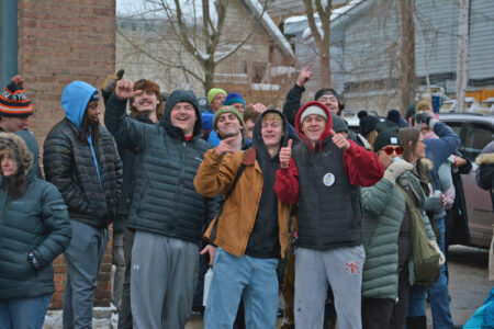 A section of the thousands of fans who gathered for Saturday’s Saranac Lake Winter Carnival gala parade watch along Main Street.