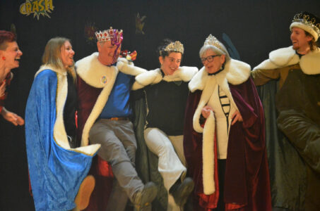 - Archbishop Vanessa Pillen, Chamberlain Sara Roth, King Milt Adams, Princess Ella Rejiba, Queen Nancy Hurteau and Prince Connor Howell dance at the end of the Rotary Show on Friday. (Enterprise photo — Aaron Marbone)