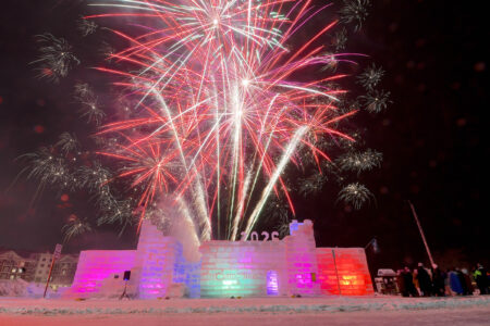- Fireworks explode at the lighting of the Saranac Lake Winter Carnival Ice Palace on Saturday evening. The 2026 Saranac Lake Winter Carnival kicked off Friday with the coronation of the king and queen and runs through Sunday, Feb 15. (Provided photo — Lou Reuter)