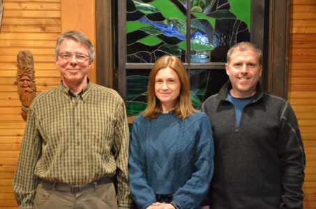 ACT candidates swept the Saranac Lake village election on Wednesday. Kelly Brunette, center, won mayor, becoming the first female mayor ever in Saranac Lake. David Trudeau, left, and Jeremy Evans, right won seats on the village board. (Enterprise photo — Aaron Marbone)