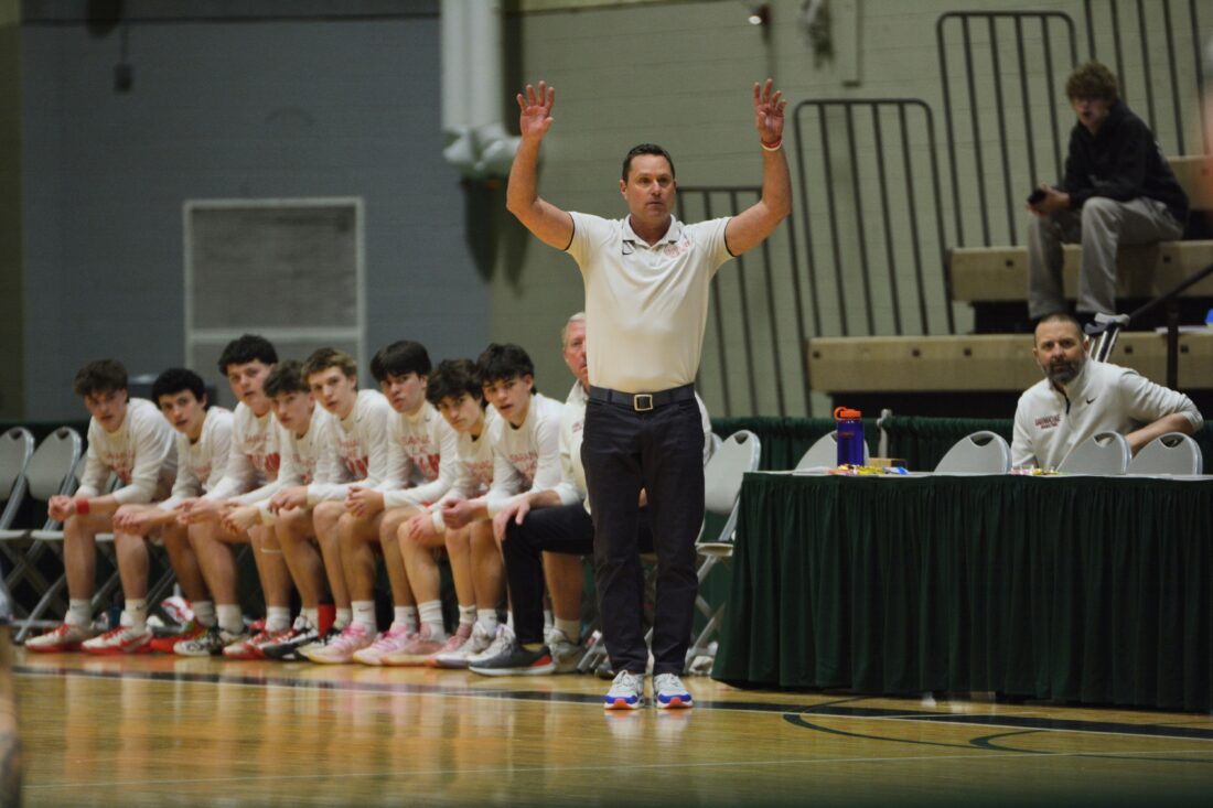 Saranac Lake’s head coach Daryl Crist calls for a play during Saturday’s NYSPHSAA Regional final against KIPP Capital Region at Hudson Valley Community College in Troy. (Enterprise photo — Parker O’Brien)
