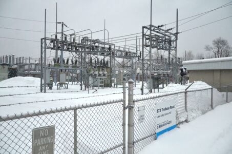 The National Grid substation on Trudeau Road in Saranac Lake, where a energy storage battery facility has been proposed. The St. Armand town board will vote on a potential one-year moratorium on these facilities at its meeting on Thursday. (Enterprise photo - Aaron Marbone)