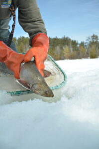 Fish culturists from the state Department of Environmental Conservation’s Adirondack Fish Hatchery in Lake Clear were stocking fish for the 42nd annual Colby Classic Ice Fishing Derby this weekend, March 7 and 8.