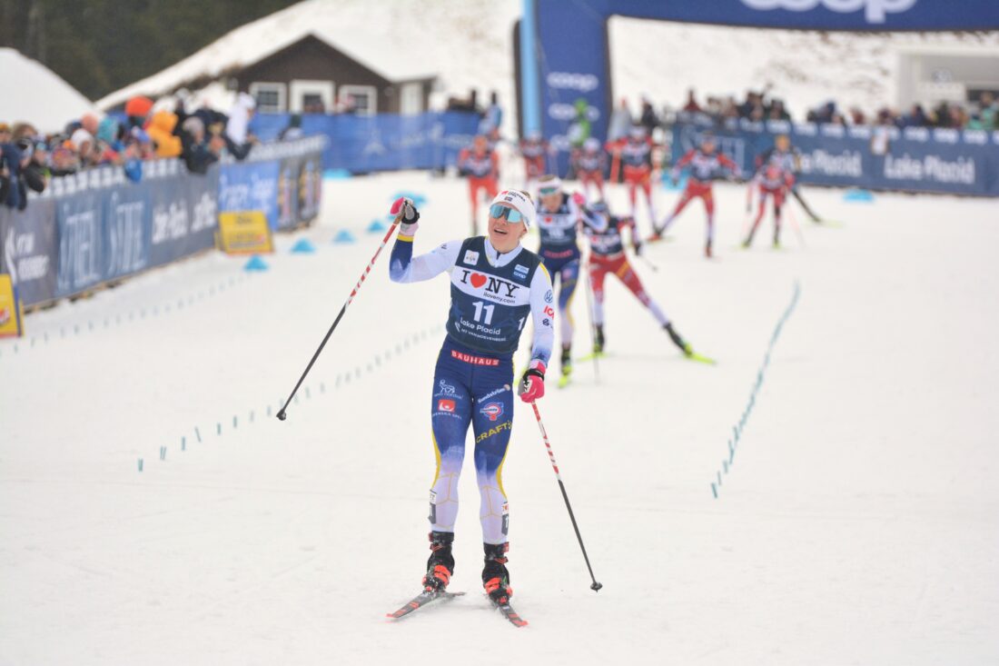 - Sweden’s Jonna Sundling celebrates after winning the women’s 20K mass start on Sunday during the FIS Cross-Country World Cup final in Lake Placid. (Enterprise photo — Parker O’Brien)