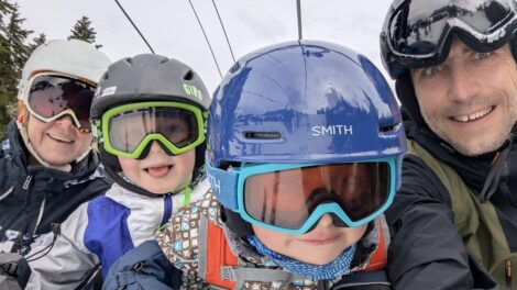 - The Vorel family smiles on a chairlift in March 2025. From left, Beata, Robin, Lucas and Jiri. (Provided photo — Jiri Vorel)